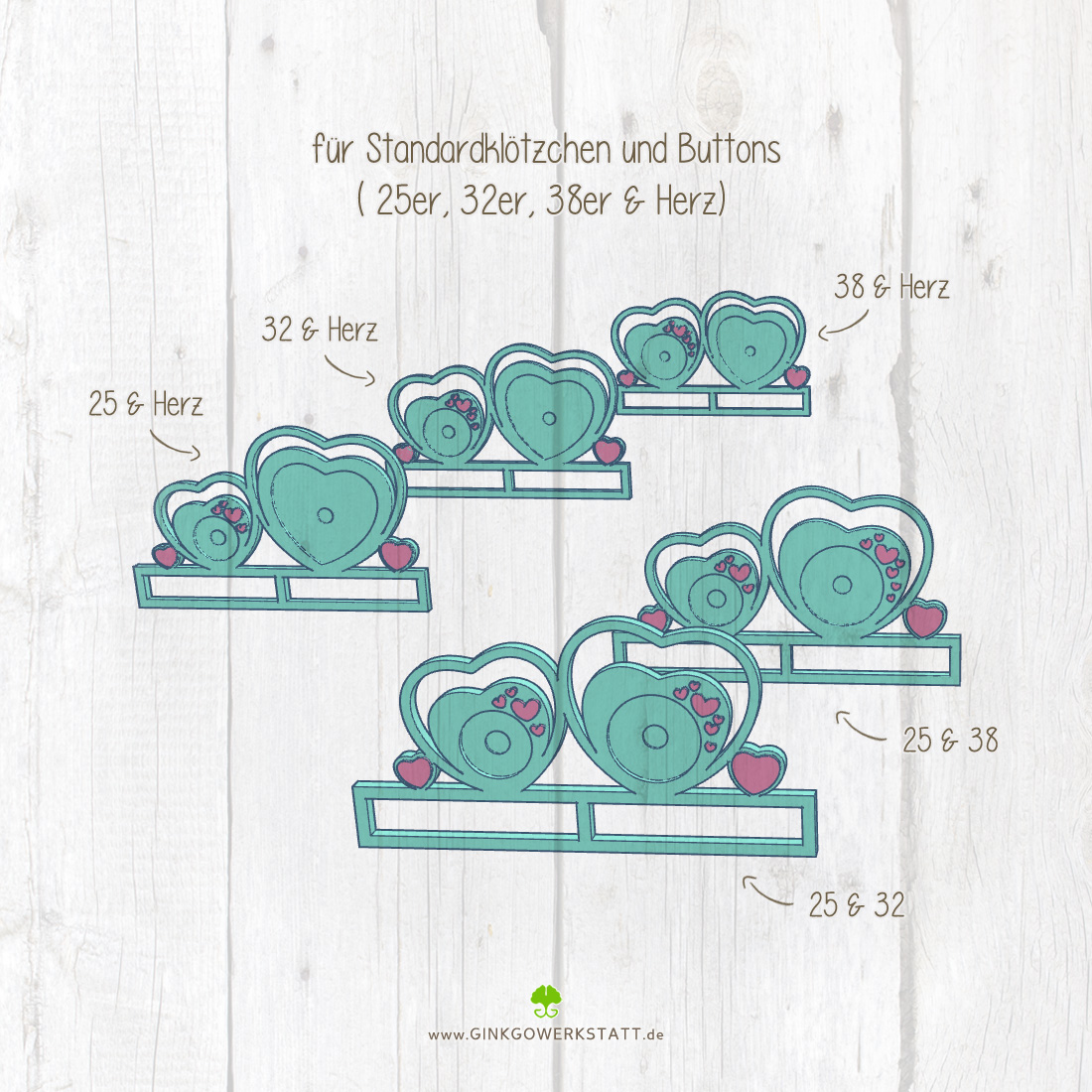 - 5 Varianten (Kombinationen für 25er, 32er, 38er & Herzbuttons)