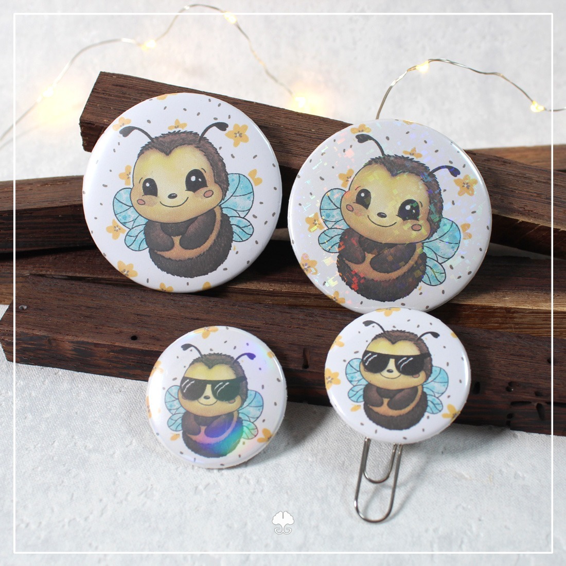 Du bekommst die Biene einmal mit und einmal ohne Sonnenbrille. Beide Varianten sowohl coloriert, als auch nur als Outline. Damit kannst du dann selber Farbe in’s Spiel bringen.