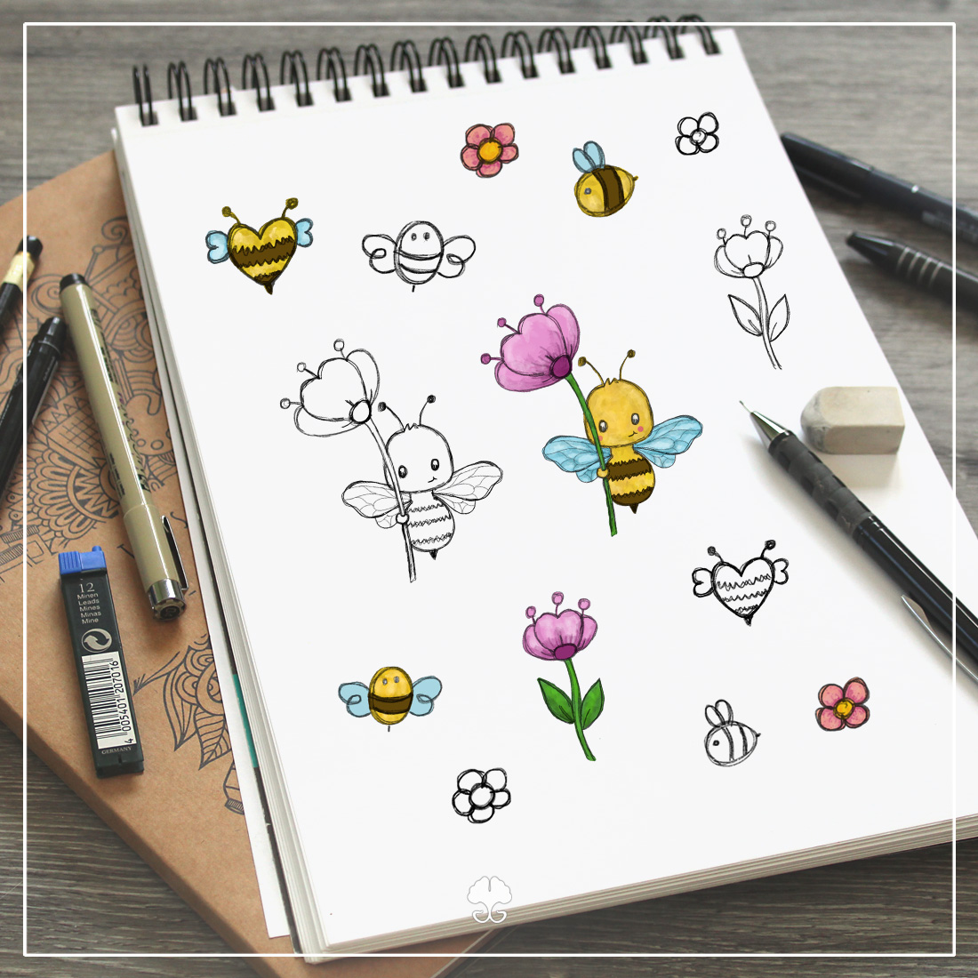 Mit dem Biene mit Blume – Digistamp Set bekommst du verschiedene Bienen und Blumen um zum Beispiel niedliche Kartengrüße zu gestalten. Sie eigenen sich aber auch zur Herstellung von Buttons, für Sublimation oder einfach nur zum Ausmalen.