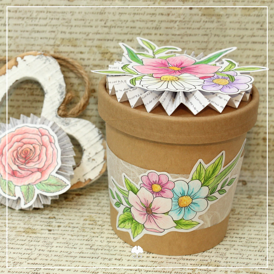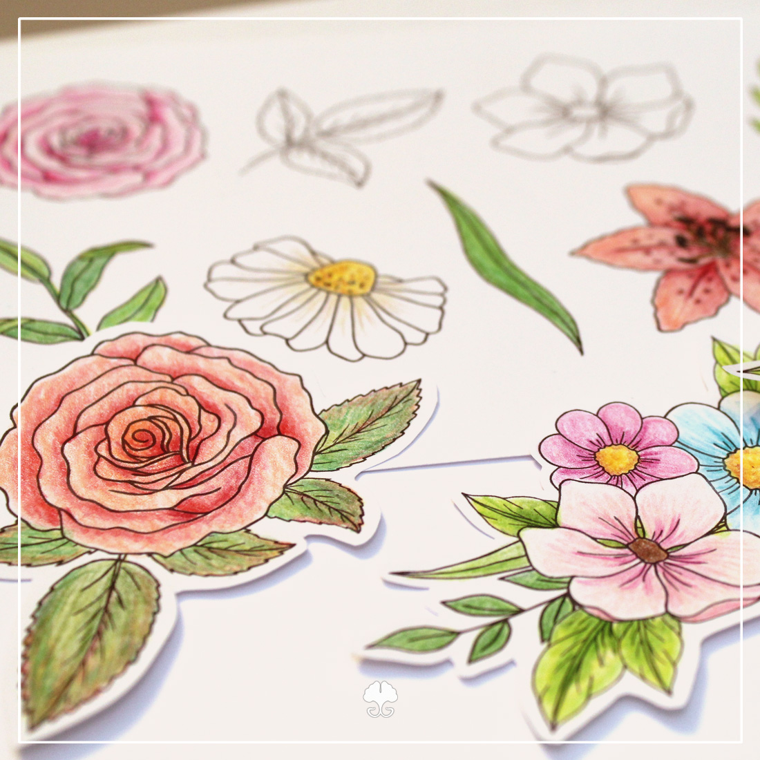 Mit dem Set kannst du Geschenke und kleine Aufmerksamkeiten dekorieren. Die Blüten und Blätter können aber auch einfach nur ausgemalt werden.