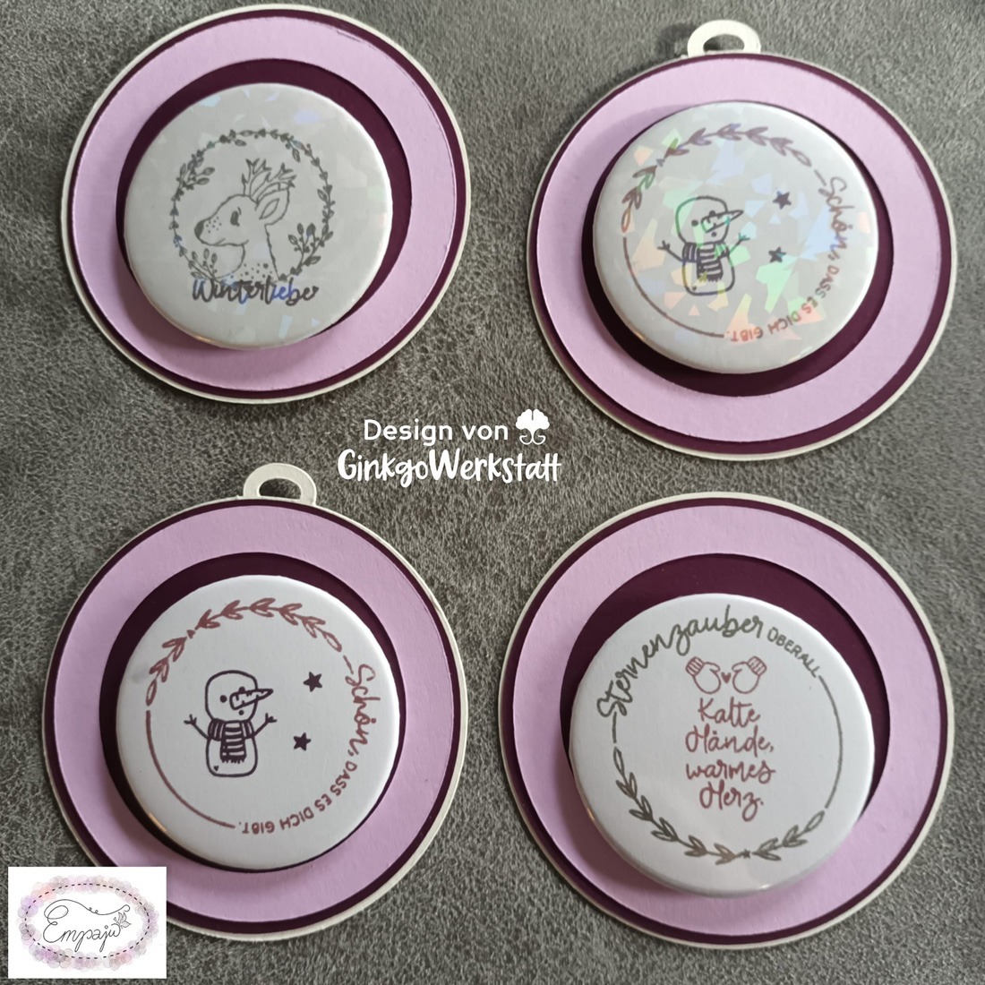 - 4 Varianten für glatte Buttons / Sicherheitsnadelbuttons (jeweils für 59er, 38er und 32er) bzw 2 für 25er