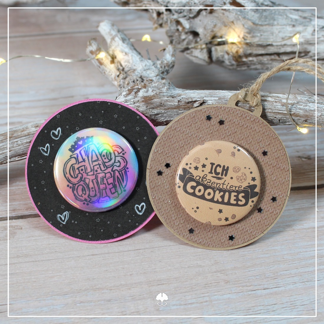Pailetten, Streudeko und ähnliches eignet sich perfekt dafür. So wird aus ’nur‘ einem Button oder einem Anhänger eine tolle Kleinigkeit für andere.