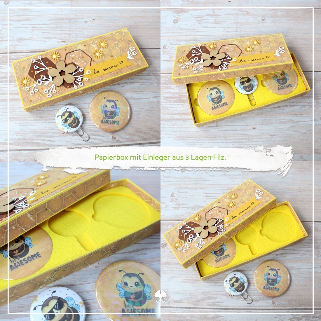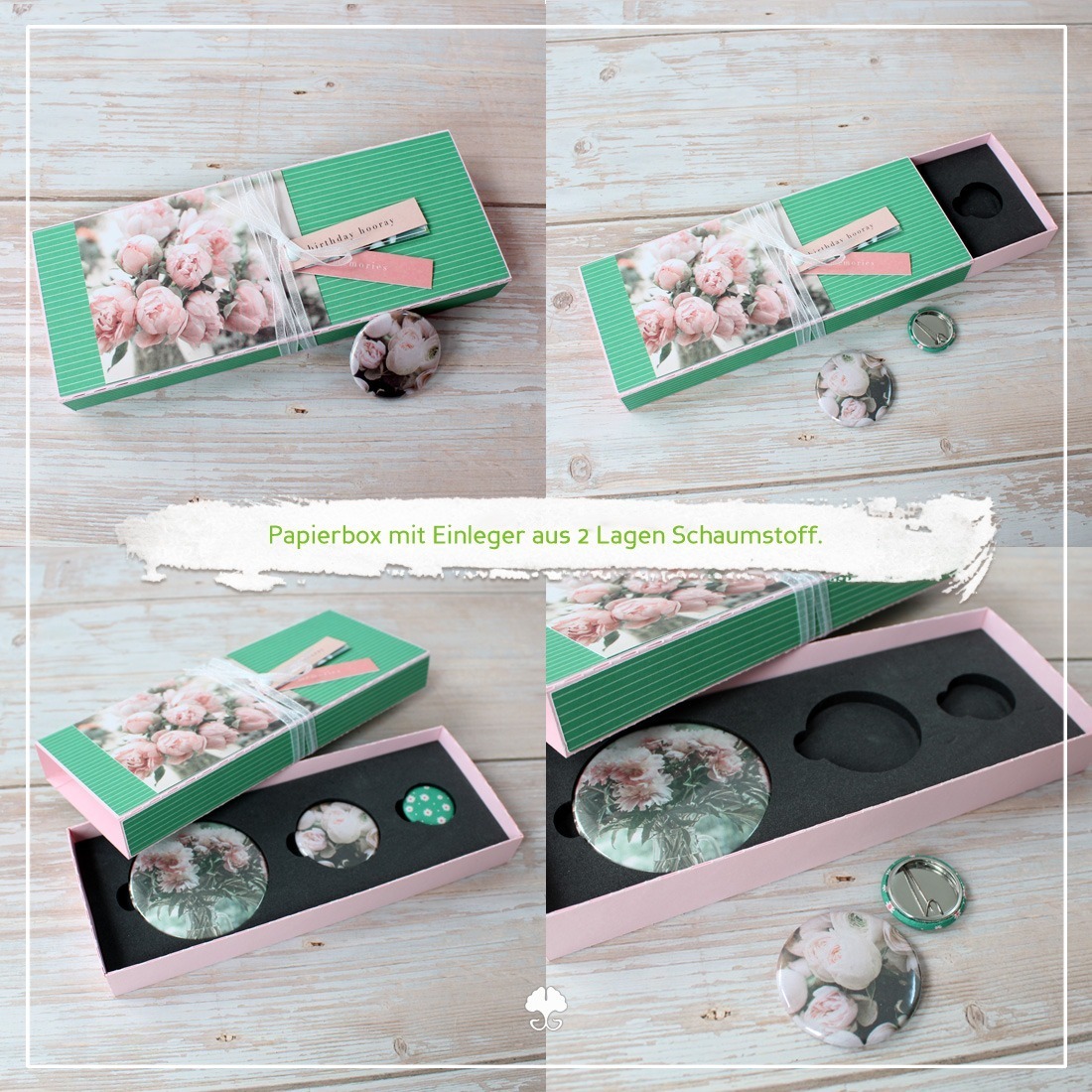 Du bist auf der Suche nach einer Möglichkeit, um deine Buttons schick zu verpacken? Mit der DIY „Buttonbox“ hast du unzählige Möglickeiten, um diese toll in Szene zu setzen. So wird dein Geschenk stilvoll abgerundet. Das Beste is, du kannst es ganz invidivuell gestalten und dekorieren.