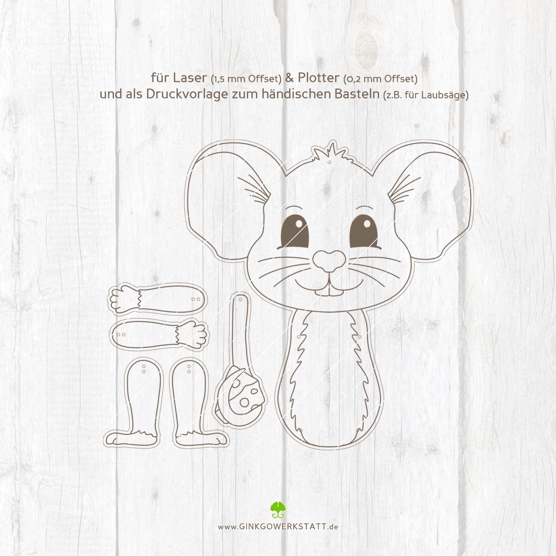 Die Wahl der Geräte und Materialien für die Umsetzung deiner Hampelfigur liegt ganz bei dir. Du kannst traditionell mit einer Laubsäge oder Schere arbeiten, oder du entscheidest dich für modernere Methoden wie einen Laser oder einen Plotter. Du allein entscheidest. Für jede dieser Varianten gibt es eine passende Vorlage. Sobald du die Grundelemente erstellt hast, kannst du sie nach Herzenslust gestalten – in klassischen Farben oder vielleicht etwas kreativer. Bei den Holzvarianten bieten sich Acrylfarben an. Bei den Papierversionen bietet es sich an mit Wasserfarben oder verschiedenen Farbstiften deiner Kreativität freien Lauf lassen kannst. Auch viele andere Materialien und Farben können genutzt werden, um deine Maus zum Leben zu erwecken.