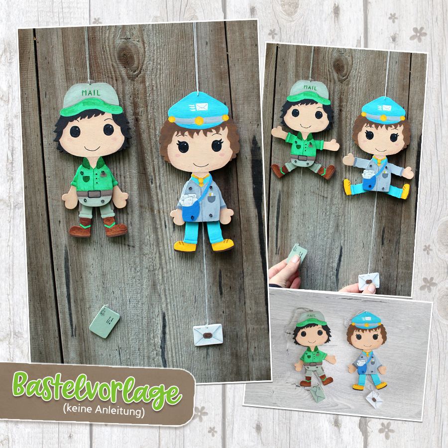 Mit der Hampelberufe „Briefträger/in“ – Bastelvorlage erhältst du zwei Vorlagen zum Anfertigen von Hampelfiguren. Es gibt die Vorlage einmal in einer weiblichen und einmal in einer männlichen Variante. So ist dann für jeden etwas dabei.