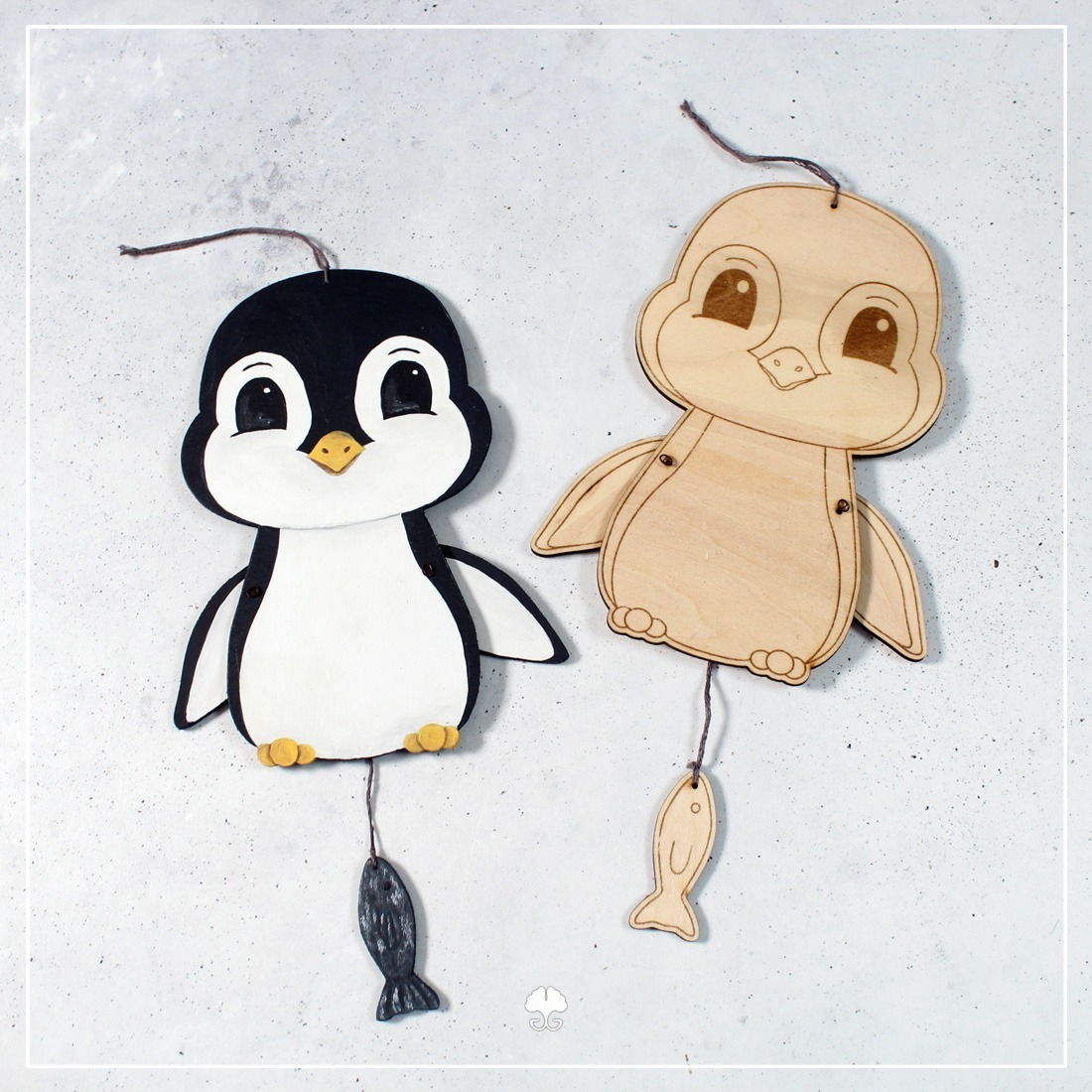 Die fertige Hampelfigur ist auch nicht nur ein individuelles, persönliches Spielzeug. Sie kann auch als Dekoration für das Kinderzimmer genutzt werden. Oder aber als besonderes Geschenk für alle die Pinguine mögen.