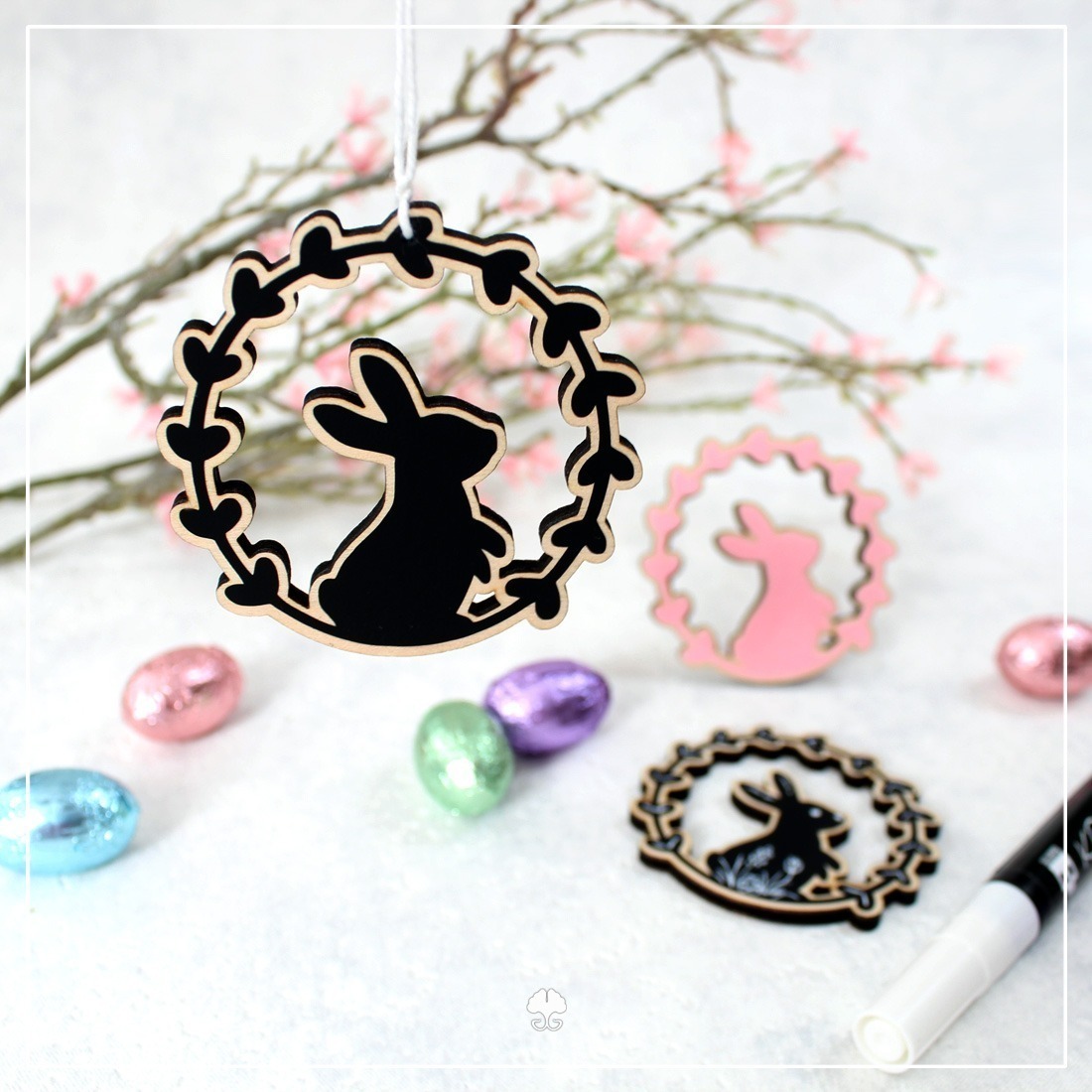 Mit der Hase im Kranz – Kreativdatei kannst du dir mit Hilfe von Plotter oder Laser – aber auch in Kombination beider Geräte – schnell und einfach tolle Dekorationen für Ostern erstellen.