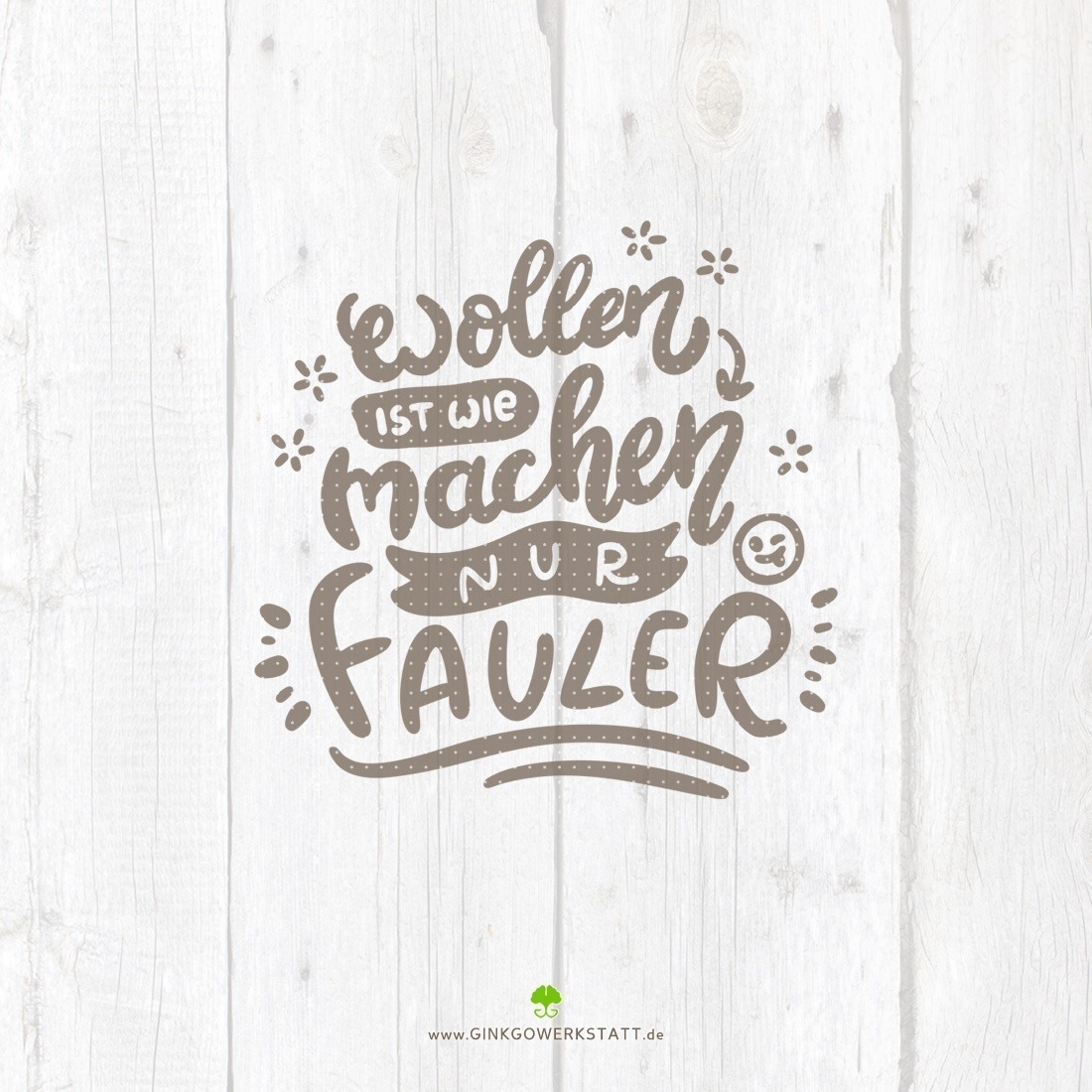 Wer kennt sie nicht die ganzen Pläne die man so in seinem Leben hat und macht. Doch an der Umsetzung hapert es manchmal. Aus welchen Gründen auch immer. Meist wegen Faulheit. Und genau da passt die Lettering „Wollen ist wie machen“ – Plotterdatei perfekt.