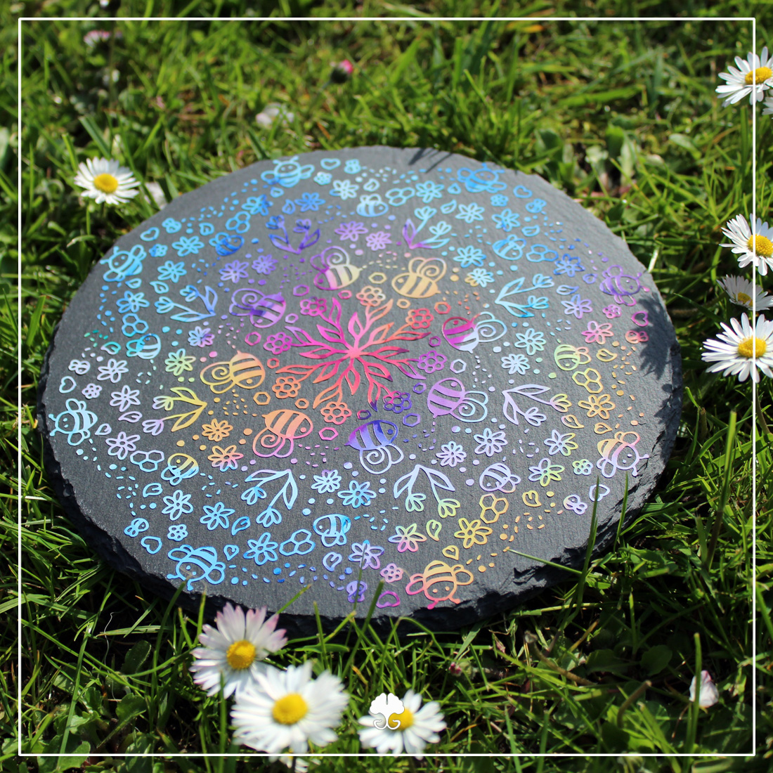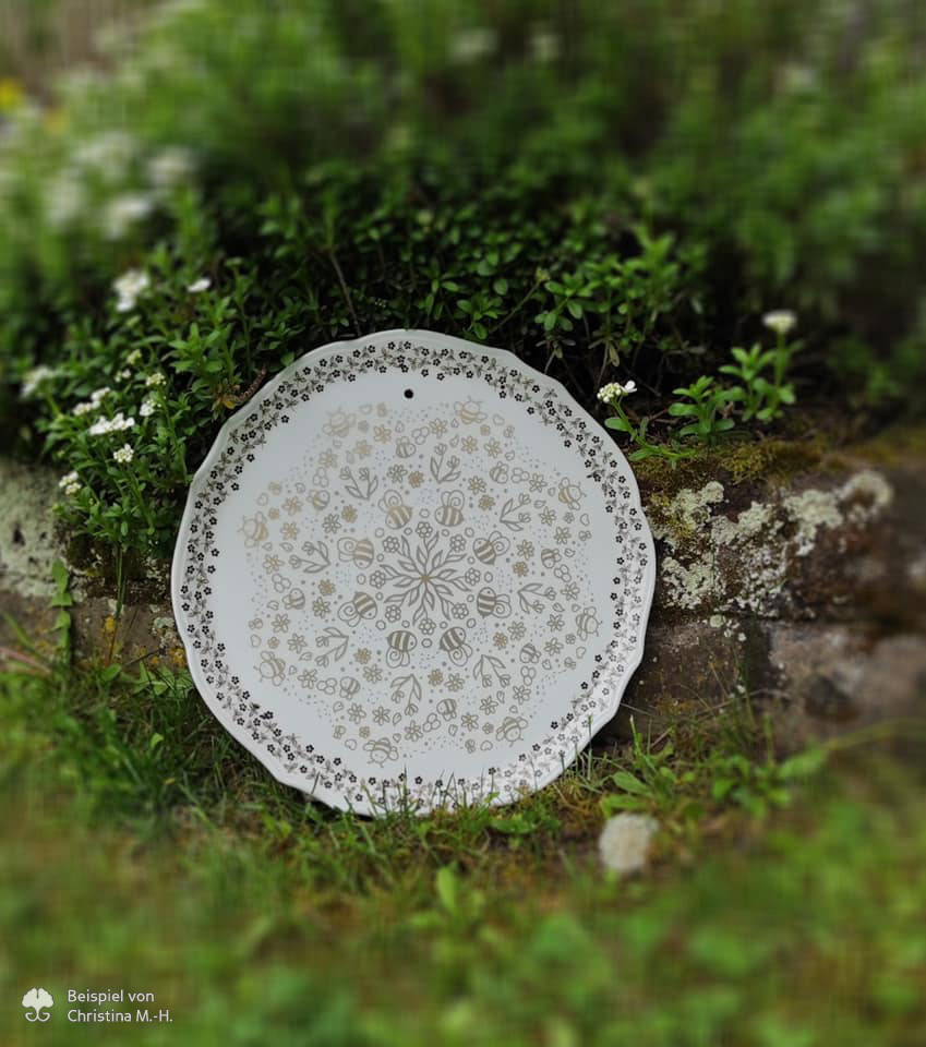 Mit der Mandala „Doodle Biene“ – Plotterdatei bekommst du eine filigrane und detailreiche Datei, die sich auf vielfältige Weise umsetzen lässt. Egal ob sublimiert, farbig geplottet oder einfarbig aufgebracht, um es dann auszumalen. Und ein paar mehr Bienen und Blumen können der Welt ohnehin nicht schaden.