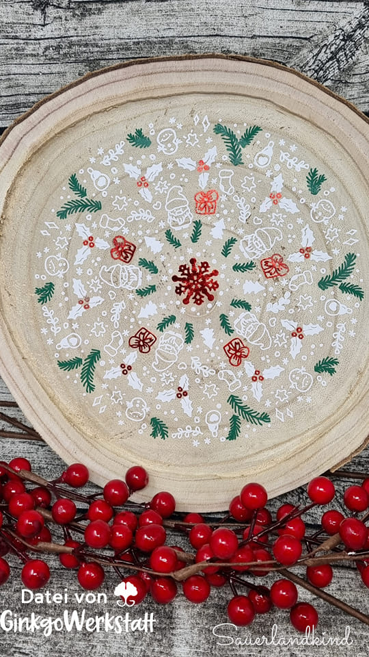 Mit der Mandala „Doodle Weihnachten“ – Plotterdatei bekommst du eine filigrane und detailreiche Datei, die sich auf vielfältige Weise umsetzen lässt. Egal ob sublimiert, farbig geplottet oder einfarbig aufgebracht, um es dann auszumalen.