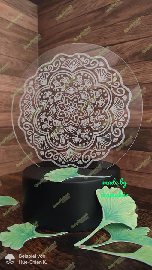 Mit der Mandala „Ginkgo“ – Plotterdatei kannst du nicht nur runde Gegenstände, wie z. B. Untersetzer, im Ganzen verzieren. Probiere doch auch einfach mal nur Teile des Mandalas zu verwenden und somit Highlights zu setzen.
