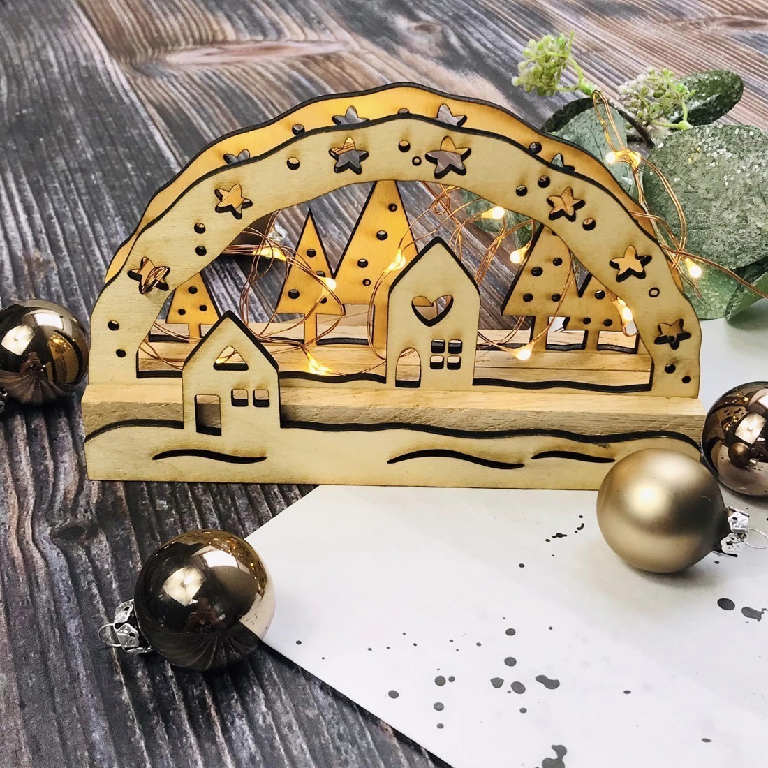 Mini-Lichterbogen „Häuser im Wald“ – Kreativdatei