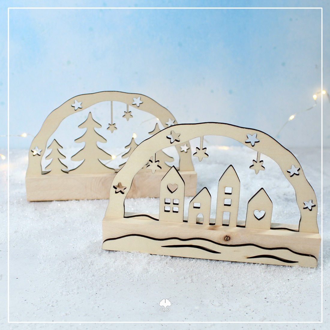 Verwende Acryl, Sperrholz oder auch Aquarellpapier. Damit wurden die Lichterbögen bereits umgesetzt. Achte aber darauf, dass dein Gerät auch mit den feinen Details umgehen kann. Gerade bei Verarbeitung mit Schneidemaschinen ist dies wichtig.