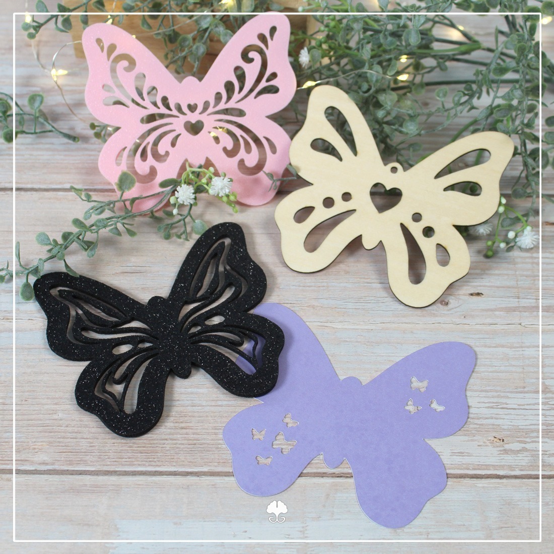 Dich faszinieren Schmetterlinge in all ihren Formen und Varianten? Du liebst es zu beobachten, wenn die flatterhaften Wesen durch die Lüfte schweben oder wie sie von Blume zu Blume gleiten? Dann ist die Mix’n Match „Schmetterlingsliebe“ – Kreativdatei genau das Richtige für dich. Das Set bietet dir viele Möglichkeiten für den Laser, Plotter und 3D-Drucker, um damit kreativ zu werden.