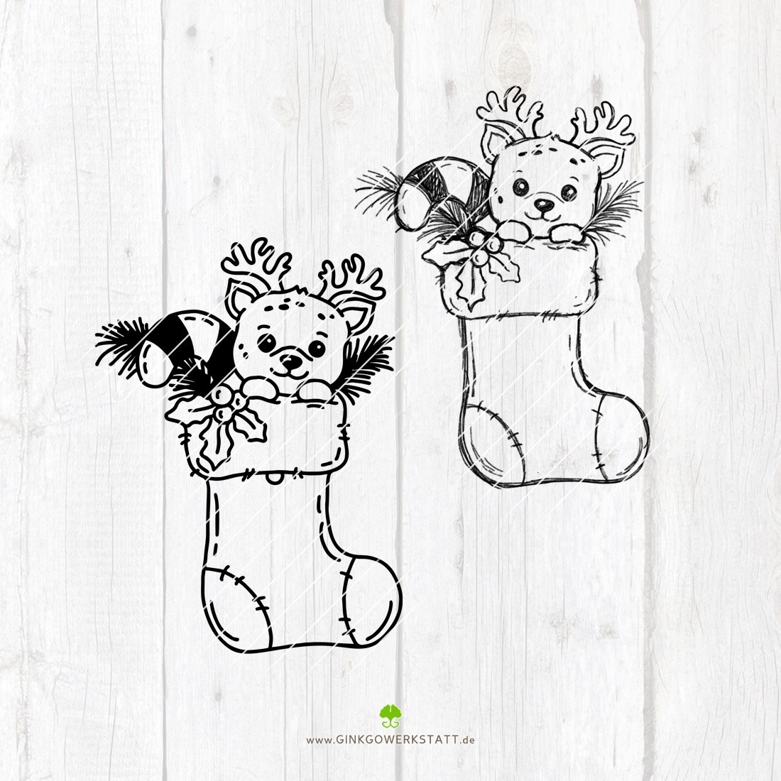 Nach dem Kauf der Nikolaussocke mit Reh – Kreativdatei erhältst du digitale Dateien/Vorlagen (kein physisches Produkt) in den folgenden Formaten: