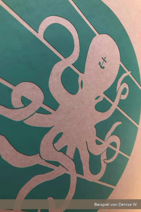 Du kannst den Oktopus einzeln umsetzen oder du nutzt das Negativ mit den Streifen im Hintergrund. Bei dieser Variante kannst du zudem mit und ohne Details vom Oktopus arbeiten.