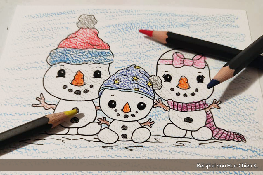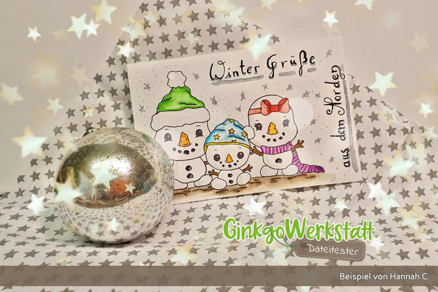 Die Mitglieder der Schneefamilie können sowohl in der Weihnachts- als auch in der Winterzeit genutzt werden. Zum Beispiel als Geschenkanhänger oder für Kartendesigns. Die Schneefamilie freut sich aber auch darüber, wenn sie einfach nur ausgemalt wird.