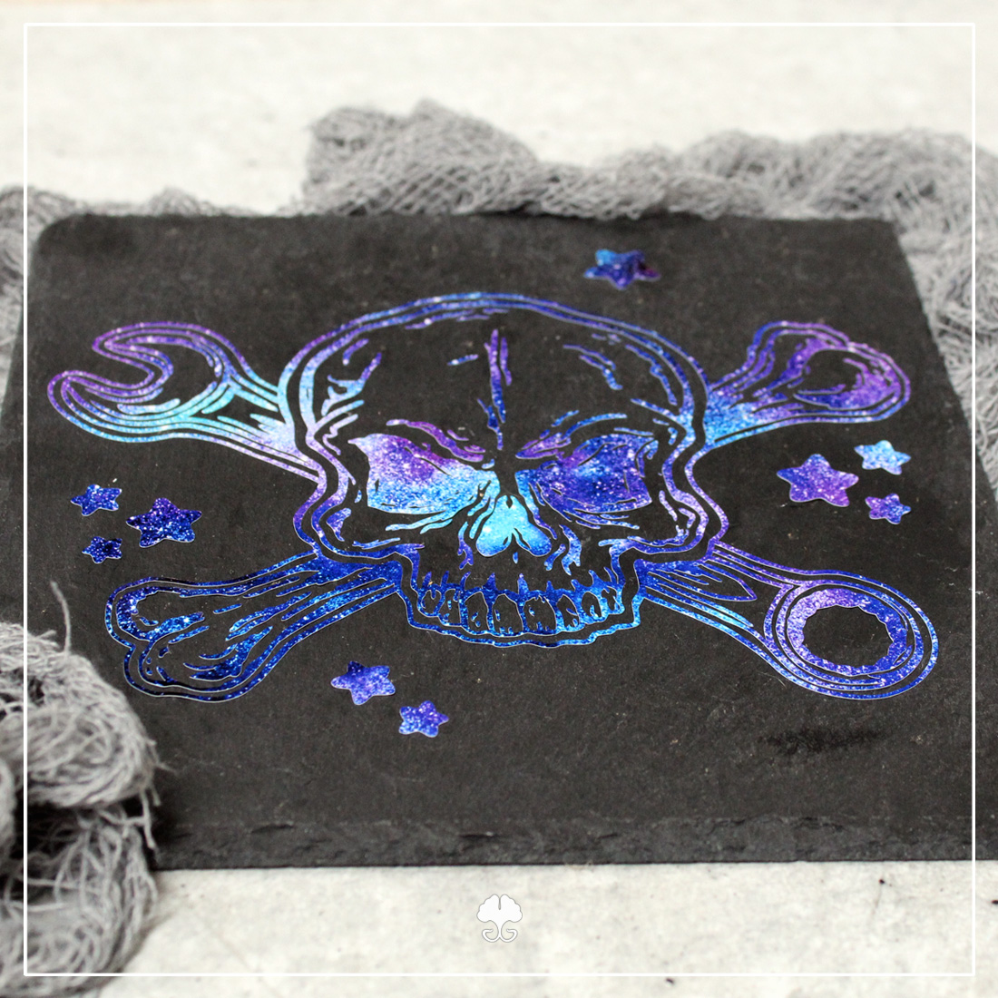 Mit der Skull „Mix’n Match“ – Plotterdatei erhältst du einen Totenschädel, den du mit verschiedenen Bonus-Elementen ganz individuell gestalten kannst. Neben Kolben, Knochen und Werkzeug stehen dir auch noch andere Dekoelemente zur Verfügung.