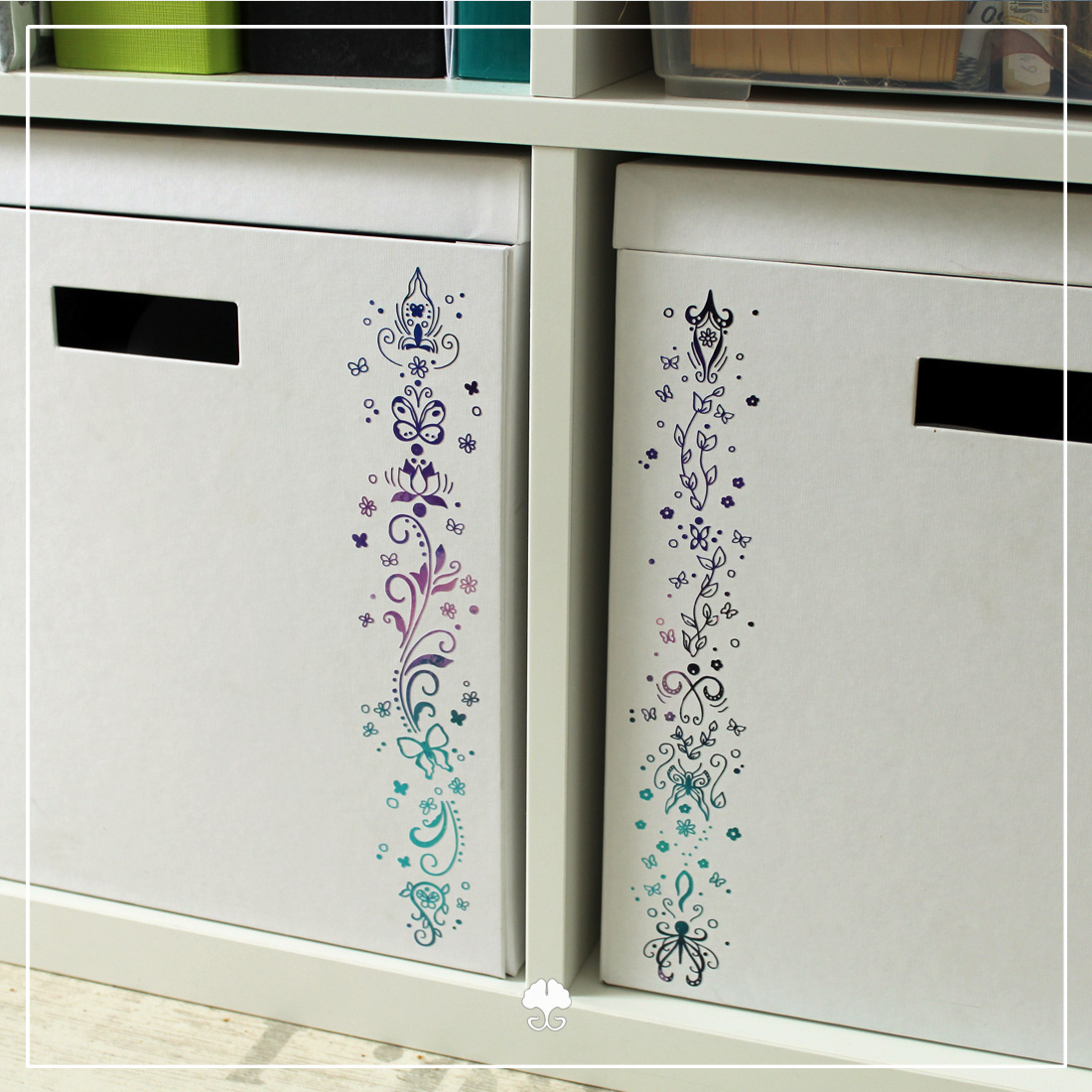 Mit Plotterdateien lassen sich im Nu verschiedene Dinge verzieren. Egal ob Textilien, Wände, Gegenstände oder Kartendesigns. Lade die jeweiligen Dateien in dein Plotterprogramm, passe die Größen an und schon kann es losgehen. Ein paar Beispiele zeige ich dir in der Vorschau, aber natürlich gibt es noch viel mehr Möglichkeiten.