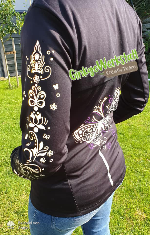 Sleeves – Plotterdateien sind sehr filigrane Dateien. In Originalgröße sind die Designs meist nur bedingt für Vinyl geeignet. Es ist aber durchaus möglich sie damit umzusetzen, bedarf aber einiges an Geduld und guter Folie. Und auch bei der Verwendung mit Flex-Folien sollte eine starke Haftung des Trägers gegeben sein, da sonst Kleinteile verloren gehen können.