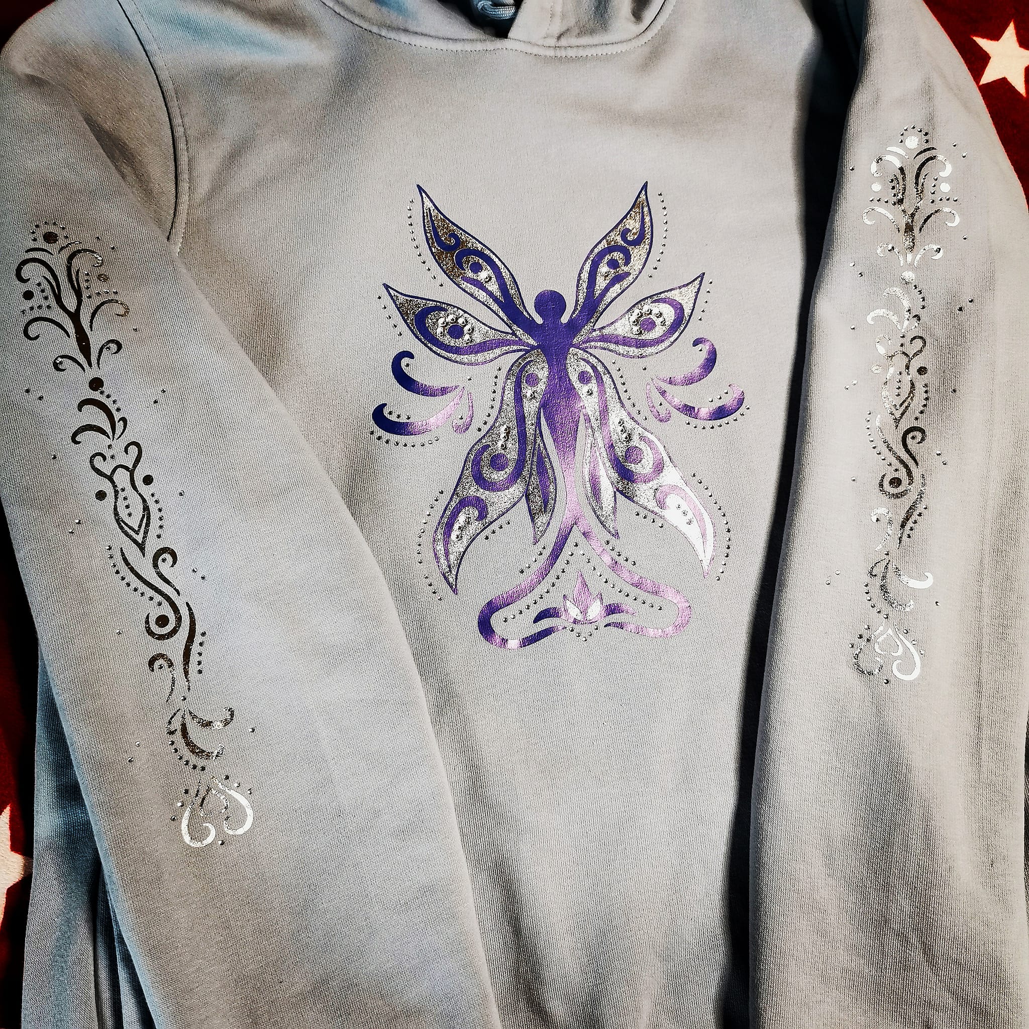 Mit der Sleeves „Spirit Fairy“ – Plotterdatei kannst du langweilige Ärmel mit einem dezenten Strassmotiv verschönern. Hast du kein Strass zur Hand, kannst du die Datei auch komplett nur mit Folien umsetzen.