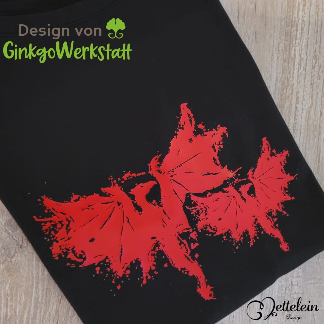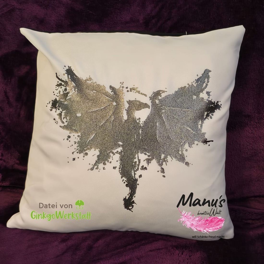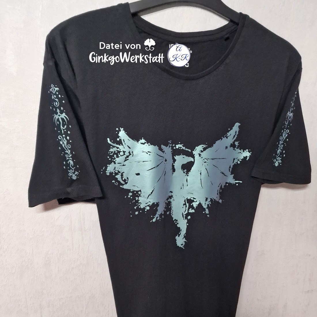 Kommt der Plotter zum Einsatz so kann die Wahl der Folie dem Design jedes Mal eine ganz neue Optik verschaffen. Setzt du den Drachen in kleiner um und es werden nicht alle Details geschnitten, wen stört es? Denn überprüfen, ob alles korrekt ist, tut bestimmt keiner 😉