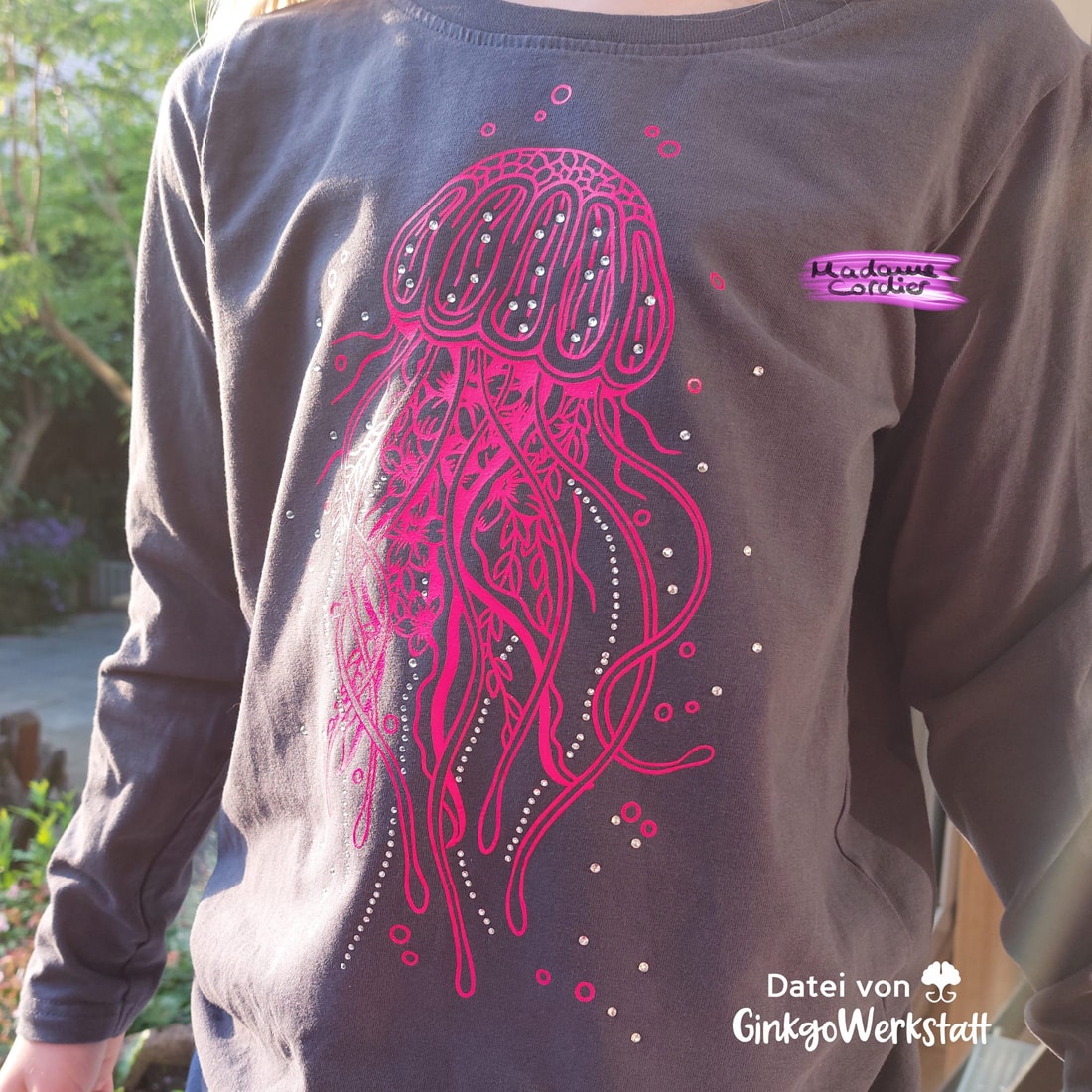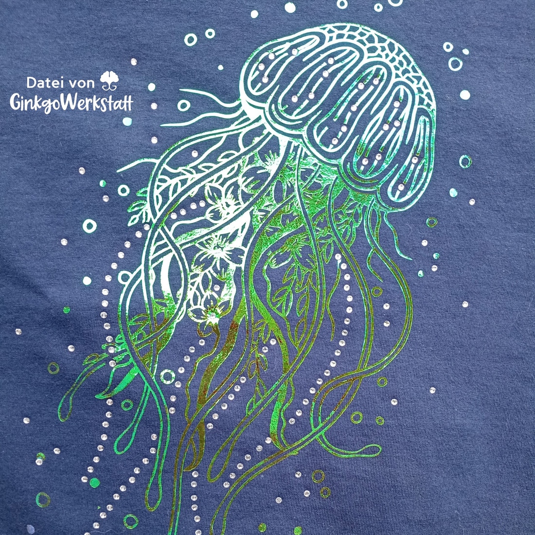 In meinem Beitrag „Arbeiten mit Strass – Mit und ohne Plotter“ findest du ein paar Hinweise, worauf du achtet solltest. Außerdem gibt es dort ein paar GinkgoGoodies, um sich an das Thema rantasten zu können.