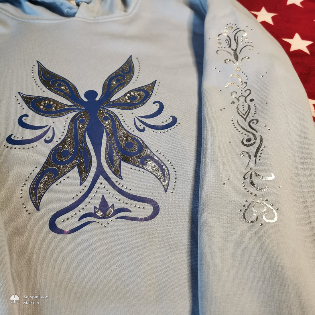 Mit der Strass „Spirit Fairy“ – Plotterdatei bekommst du ein abstraktes Feendesign mit welchem du nicht nur Textilien dekorieren kannst. Hast du kein Strass zur Verfügung kann die Datei auch komplett nur mit Folie umgesetzt werden.