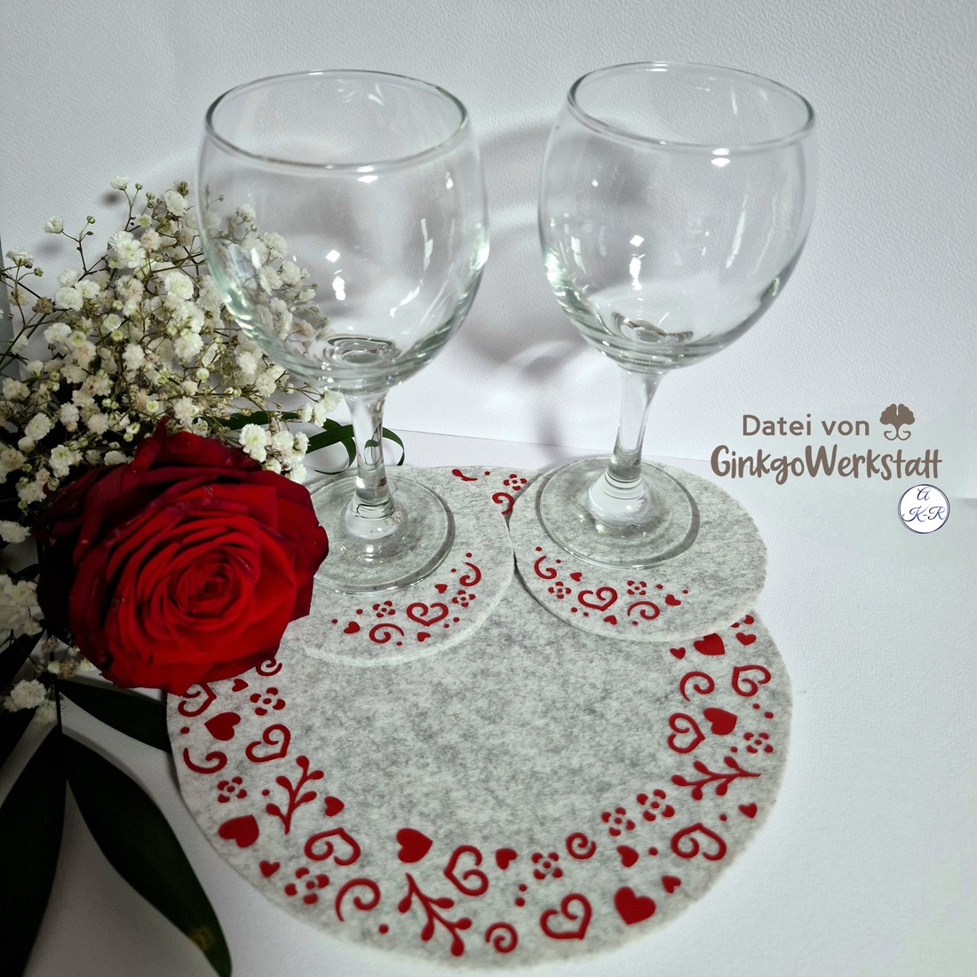 Mit der Untersetzer „Herzen“ – Kreativdatei wird es herzig. Mit dem Design kannst du sowohl zur Hochzeit, zu einem besonderen Anlaß, zum Geburtstag, zum Valentinstag oder auch einfach mal so tolle Untersetzer zaubern. Das geht sowohl mit dem Plotter, als auch dem Laser.