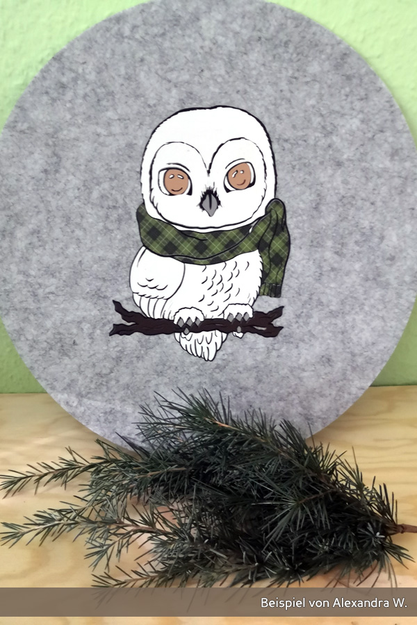 Mit der Wintereule – Plotterdatei bekommst du ein tolles Motiv, um kuschlige Pullover für die Winterzeit zu einem echten Hingucker zu machen. Aber auch auf Notizbüchern oder anderen Gegenständen macht die Wintereule einen guten Eindruck.