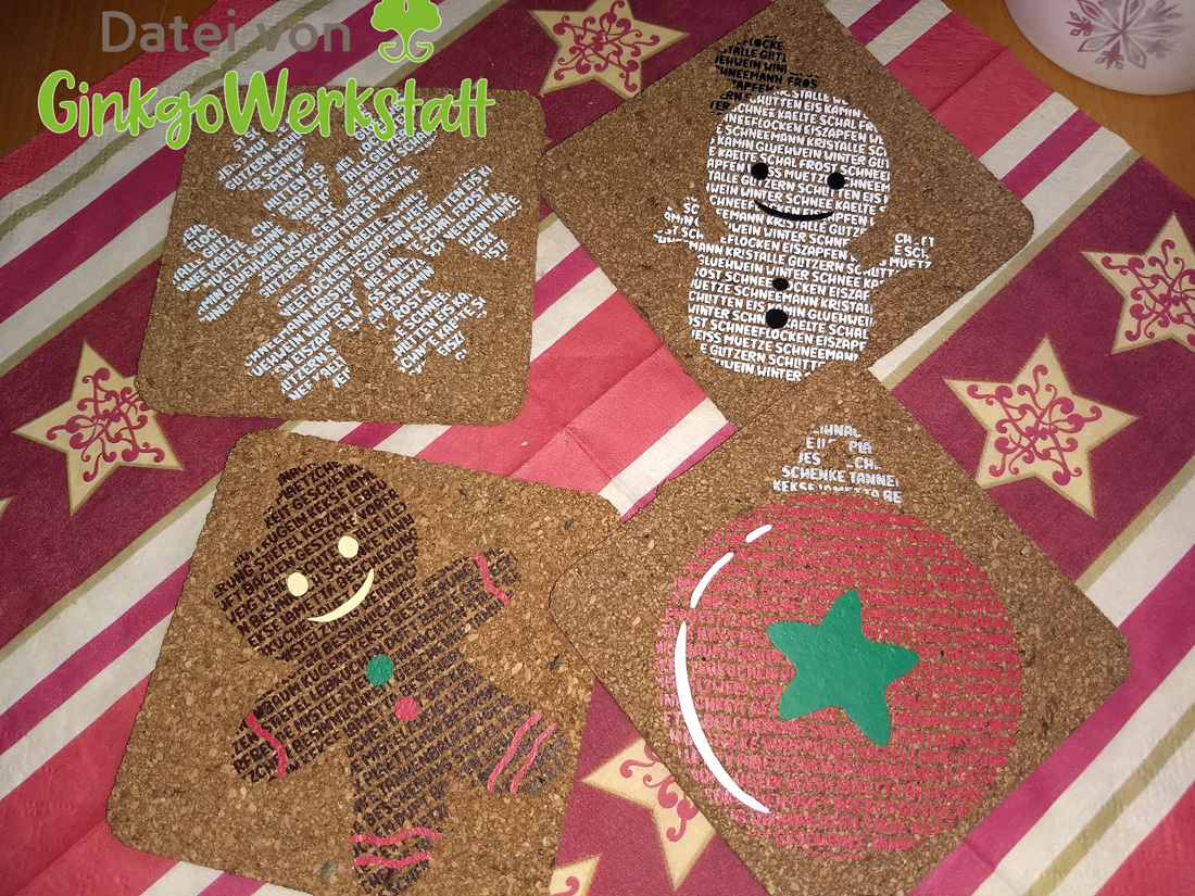 Mit der Wortspiel „Mini-Weihnachten“ – Plotterdatei bekommst du eine Schriftdatei im Miniformat. So kannst du dich auch mal an den beliebten Motiven ausprobieren, ohne dass es zuviel Zeit in Anspruch nimmt. Im Set enthalten sind eine Kugel, ein Lebkuchenmann, ein Stiefel und Ilexblätter. Ideal für kleine Highlights zur Weihnachtszeit.