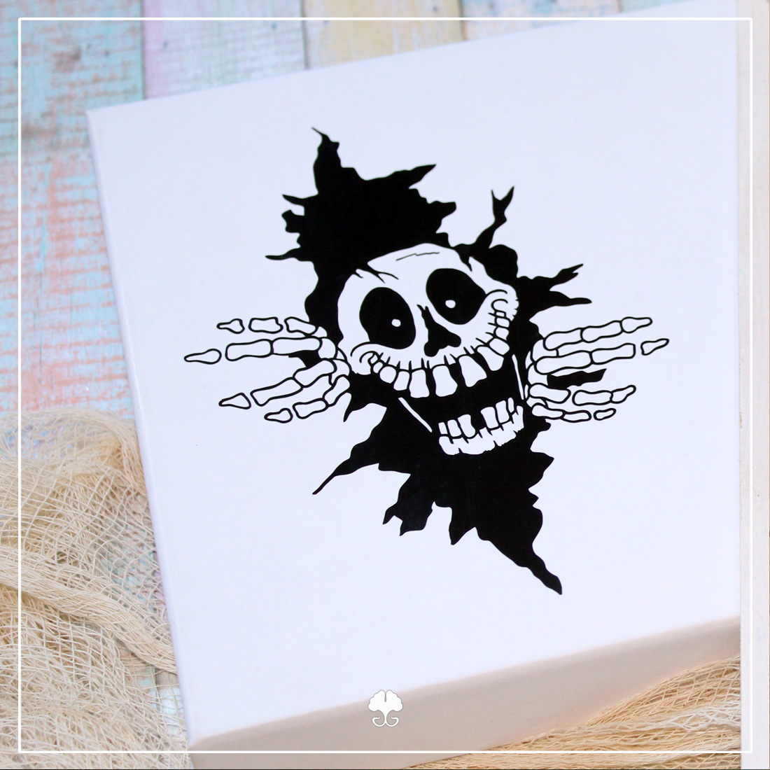 Mit der Zerrissen „Schädel Helmwart“ – Plotterdatei bekommst du ein lustiges Motiv zum Verschönern von Textilien wie (z.B. Shirts) oder kannst damit verschiedenste Oberflächen (z.B. Kisten) gestalten. Und mit seinem charmanten Lächeln erobert Helmwart sowieso die Herzen im Sturm.