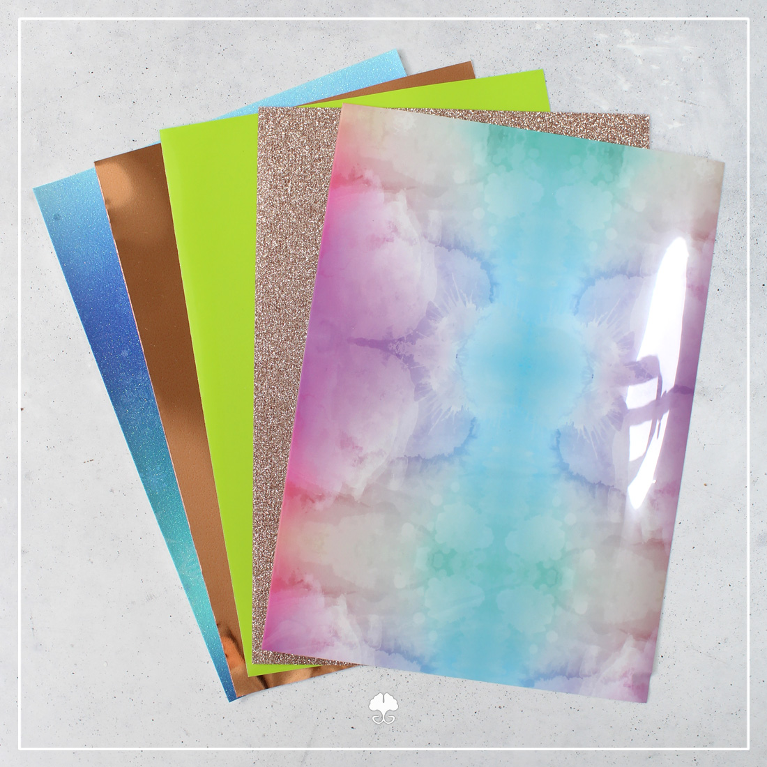 Hologramm- und Opalfolien zeichnen sich durch einzigartige Farbspiele aus. Hier spielt der Lichteinfall eine entscheidene Rolle. -