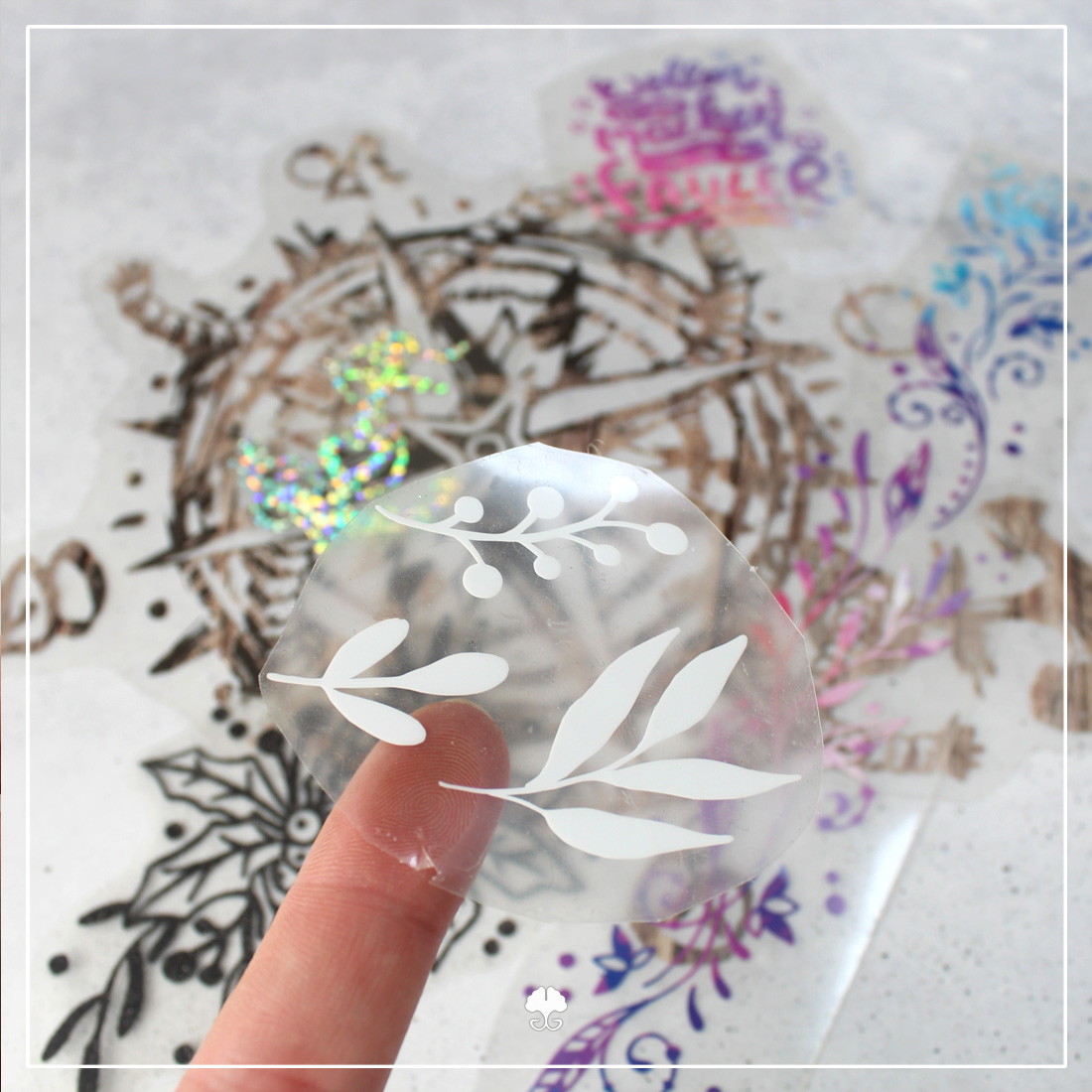 Hast du flächige Motive brauchst du keine Übertragungsfolie verwenden. Bei filigranen Motiven oder solche, die aus mehreren Einzelteilen bestehen, benötigst du eine Übertragungsfolie. Damit kannst du dein Motiv in eins auf die gewünschte Oberfläche anbringen.