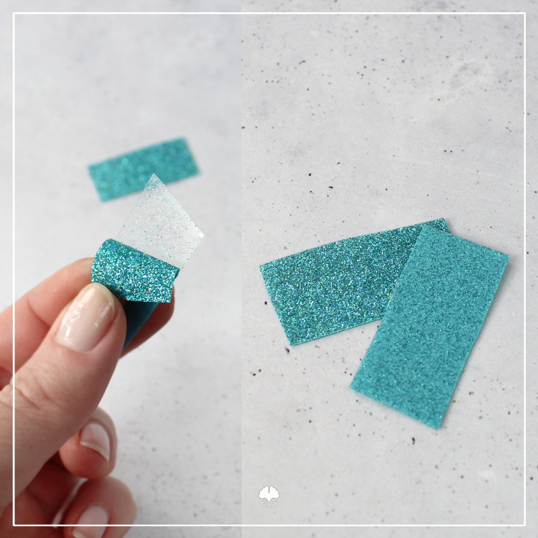 Glitterfolien gibt es in verschiedenen Varianten. Den typischen dickeren, mit rauer Oberfläche, aber auch in glatt. Da sind die Glitterpartikel dann versiegelt. -